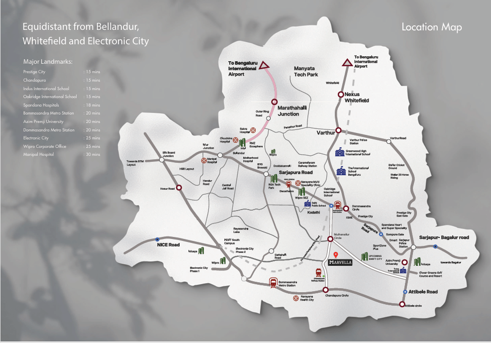 - Prime Connectivity: Just 15 minutes from Sarjapur, close to Whitefield, Bellandur & Electronic City.