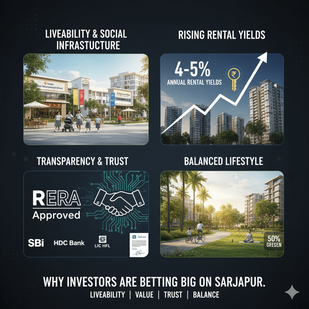 In a city that’s always moving, Sarjapur stands out for striking a rare balance — urban energy with suburban calm. And that balance is exactly what’s drawing end-users and investors alike toward this fast-evolving micromarket.